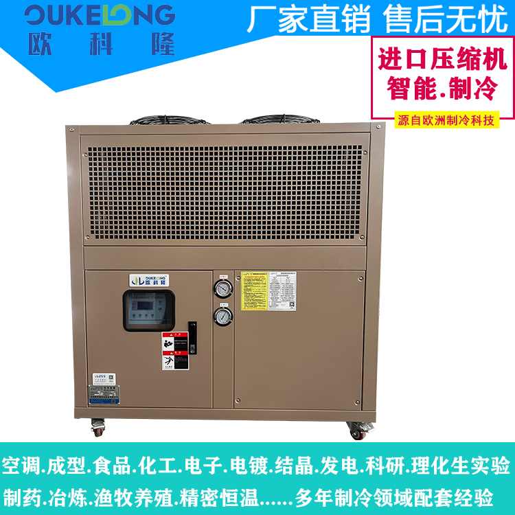 深圳欧科隆制冷自主设计研发生产的15HP风冷式冷水机是一款中高功率工业制冷设备,专为中型生产线和集中冷却需求设计。该机型采用高效风冷散热技术,免除冷却塔配置,兼具大冷量输出与便捷安装特性,是制造业升级的理想温控解决方案。
