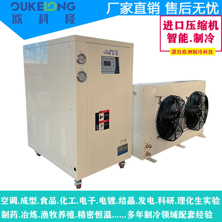 欧科隆制冷5HP分体式冷水机是一款专为中小型工业及商业应用设计的高效制冷设备,采用压缩机与冷却系统分离结构,兼具性能与安装灵活性。